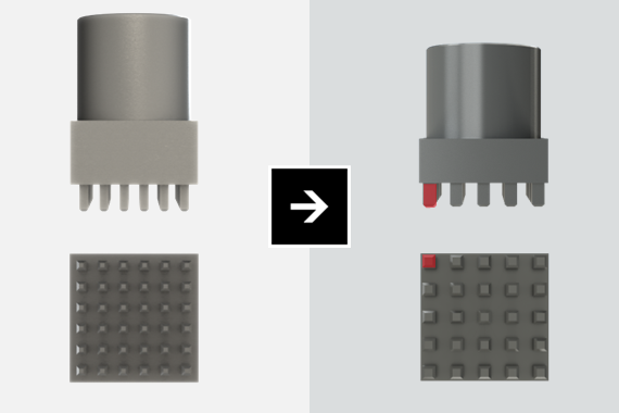 As standard, Powerelements with solid press-fit technology use pins with a 1.6 mm diagonal and a length of 3.5 mm. Depending on the PCB layout, it may make sense to adapt the pins to a 2.2 mm pin diagonal and a 3.0 mm pin length. This can lead to the following advantages: